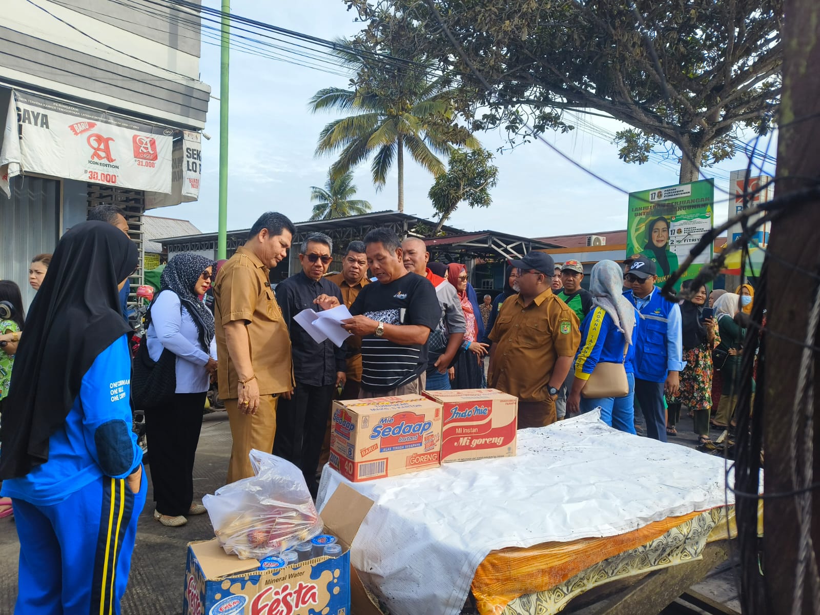 NUSASATU – Bupati Kutai Timur (Kutim) Ardiansyah Sulaiman didampingi istri yang juga Ketua TP PKK Kutim Siti Robih dan Kepala Dinas Sosial (Dinsos) Ernata Hadi Sujito langsung bergerak ke lapangan untuk menyalurkan bantuan bagi korban kebakaran di kawasan Pasar Sangatta Selatan (Sangsel). Untuk diketahui, si jago merah baru saja menghanguskan kawasan padat penduduk tepatnya di Jalan Kampung Baru, RT 10, Kelurahan Singa Geweh, beberapa waktu lalu.