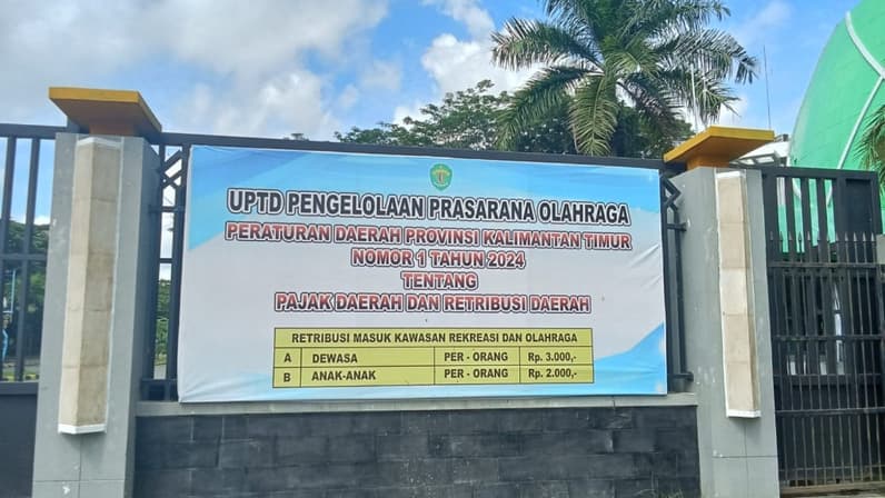 PAPAN pengumuman berwarna biru muda itu sempat terpasang di samping pintu masuk Kompleks Gelora Kadrie Oening, Jalan K. H. Wahid Hasyim. Di dalamnya tertera besaran retribusi untuk dewasa (Rp 3 ribu/orang) dan anak-anak (Rp 2 ribu/orang). Retribusi untuk ke sana, ternyata masuk dalam objek retribusi kategori kawasan rekreasi dan olahraga. Ini mengacu Peraturan Daerah (Perda) Kaltim Nomor 1 Tahun 2024 tentang Pajak Daerah dan Retribusi Daerah. Hal ini bahkan ditulis di papan pengumuman tersebut.
